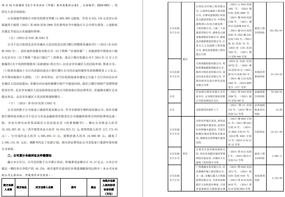 为领会证券行业涉诉环境,里手汇总统计了上市公司涉及金融机构的涉诉通知布告;并据息,统计涉及证券、基金、期货、私募等持牌机构的诉讼消息。来历:国泰君安证券股份无限公司换股接收归并海通证券股份无限公司并募集配套资金暨联系关系买卖演讲书。1,中国邮政储蓄银行股份无限公司诉上海富诚海富通资产办理无限公司(富诚海富通)及其他被告证券欺诈义务胶葛案。涉诉本金金额:52,657。98万元。被告诉讼请求:请求判令全数被告连带补偿被告所有投本钱金丧失526,579,800。00元以及利钱丧失。因“华泰美吉特灯都资产支撑专项打算”发生本色性违约,专项打算持有人之一邮储银行向上海金融法院告状该专项打算的原始权益人昆山美吉特灯都办理无限公司(美吉特)以及包罗该专项打算办理人富诚海富通和该专项打算的财政参谋、法令参谋、评级机构等正在内的相关中介机构。上海金融法院已于2023年4月14日做出《平易近事》(2020)沪74平易近初1801号),判决被告美吉特向被告补偿本金丧失526,579,800元及利钱丧失,财政参谋对被告美吉特的上述给付权利承担连带义务,富诚海富通对被告美吉特的上述给付权利正在30%的范畴内承担连带义务,其他中介机构对被告美吉特的上述给付权利正在必然比例范畴内承担连带义务。2023年4月27日,富诚海富通向上海市高级提起上诉。目前本案处于二审审理阶段。2,四川信任无限公司(四川信任)诉海通资管、海通证券及其他被告金融委托理财合同胶葛案。涉诉本金:51,455。00万元。被告次要诉讼请求:请求判令被告海通资管返还或补偿被告的委托财富514,550,000。00元并领取利钱,并请求判令被告海通资管及其他相关被告当即向被告供给本项目实施过程中的全套材料等。因金融委托理财合同胶葛,四川信任向四川省成都会中级告状海通资管、海通证券等被告。四川省成都会中级于2023年9月27日做出《平易近事》(2021)川01平易近初7050号),判决驳回被告四川信任对办理人海通资管及其股东海通证券相关的诉讼请求。2023年10月23日,四川信任无限公司向四川省高级提起上诉。目前本案处于二审审理阶段。3,王亚峰(被告,反诉被告)诉海通国际(被告,反诉被告)及其境外子公司海通国际产物取处理方案无限公司(海通产物)、海通国际金融办事无限公司(海通金服)、海通国际证券及其他被告,并以对子公司办理义务为由将海通证券列入被告。合同胶葛案。涉诉本金金额:32,935。81万元。被告次要诉讼请求:请求判令全数被告返还772201股NIOUS(蔚来汽车)通俗股股票,及返还因其行为导致的经济丧失25,737,459。33美元,海通产物反诉请求:请求判令王亚峰履行贷款还款权利,向海通产物领取贷款本金港币3,659,017。02港元及相关利钱等。因单据融资买卖相关合同胶葛,王亚峰向金融法院告状海通国际及其境外子公司海通产物、海通金服、海通国际证券等被告,并以海通证券对其子公司海通国际证券负有办理义务为由将海通证券亦列入被告;海通产物公司正在该案中以王亚峰违反案涉合同商定为由提起反诉,要求其领取未了债之贷款、利钱及海通产物的各项费用。金融法院于2023年12月28日做出《平易近事》(2021)京74平易近初2157号),判决驳回王亚峰的全数诉讼请求,并判决王亚峰向海通产物领取贷款本金3,659,017。02港元并领取利钱及其他费用。2024年1月10日,王亚峰向市高级提起上诉。目前本案处于二审审理阶段。4,张方杰诉海通证券及其他被告财富损害补偿胶葛案。涉诉本金金额:12,235。76万元。被告次要诉讼请求:请求判令部门被告(未包含海通证券)连带补偿投资收益丧失122,357,560。61元及相关利钱丧失,并请求判令海通证券以及其他相关证券公司被告以案涉债权为限,弥补补偿丧失。因私募基金投资相关的财富损害补偿胶葛,张方杰向上海金融法院告状私募基金资金流向的基层私募基金托管人海通证券等被告。上海金融法院于近日做出《平易近事》(2023)沪74平易近初850号),驳回被告张方杰的全数诉讼请求。目前尚不确定被告能否提起上诉。5,富诚海富通诉海通证券及其他被告证券虚假陈述义务胶葛案。涉案本金:12,000。00万元。被告次要诉讼请求:请求判令全数被告连带补偿债券本金丧失120,000,000。00元,并连带补偿债券利钱丧失。因华晨汽车集团控股无限公司(华晨集团)刊行债券涉及虚假陈述,富诚海富通代表资管产物持有人,向沈阳市中级告状华晨集团、从承销商海通证券等被告。目前本案处于一审审理阶段。6,深圳宝骅投资办理无限公司诉海通证券及其他被告侵权义务胶葛案。涉诉本金:14,661。03万元。被告次要诉讼请求:请求判令全数被告配合补偿被告丧失146,610,274。16元及资金占用利钱。因正在中核华原钛白股份无限公司(中核钛白)非公开辟行A股股票过程中,中核钛白现实节制人等相关从体违反性让渡股票等权利,被告向上海金融法院告状中核钛白现实节制人、海通证券等被告。目前本案处于一审审理阶段。来历:供销大集集团股份无限公司关于公司控股股东分歧步履人所持部门公司股份可能被司法强制施行的提醒性通知布告(通知布告编号:2025-003)供销大集集团股份无限公司(供销大集)于近日收到公司控股股东中合农信企业办理征询无限公司的分歧步履人湖南新合做实业投资无限公司(以下简称“湖南新合做投资”)、济宁市兖州